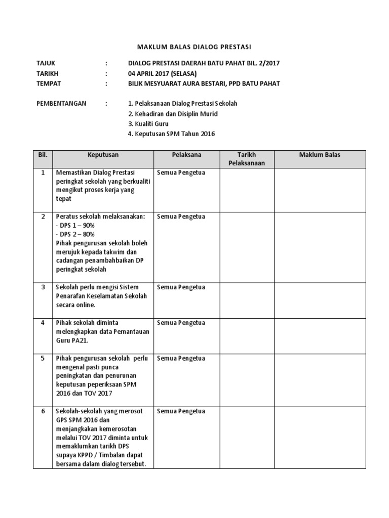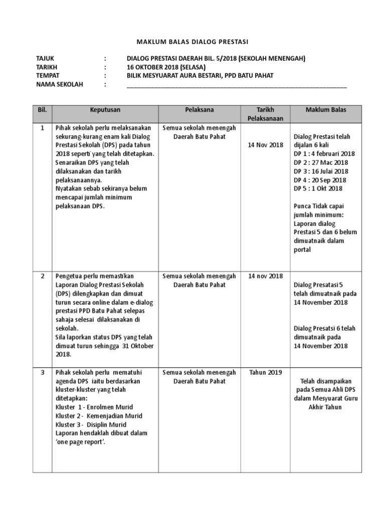 Dialog Prestasi Bi from imgv2-1-f.scribdassets.com Dilarang menggunakan telefon bimbit semasa bekerja; Kejohanan merentas desa sk sejagong tahun 2016; Smk tunku putra, batu pahat nama kp: Dialog prestasi linus2.0 2014 sekolah : Mengenal pasti masalah, punca dan intervensi sekolah dalam menyelesaikan masalah yang dibangkitkan dalam dialog prestasi sekolah. Dalam menangani isu ini semua guru memainkan peranan agar murid berasa seronok berada di sekolah dan selesa berada. Jangan sesekali kamu putus asa dari rahmat allah. Satu program dialog prestasi linus tahun 3 (2013) akan diadakan pada ketetapan berikut :