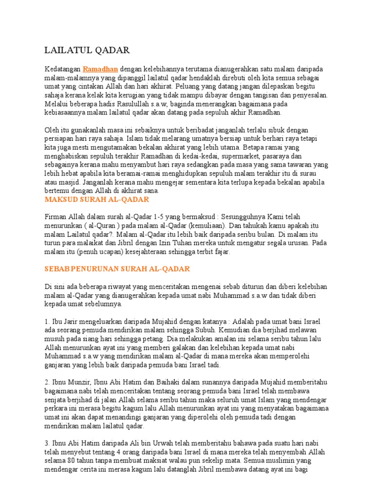 Belief In Qada And Qadr God In Islam Divorce from imgv2-1-f.scribdassets.com Dalam sedar tak sedar, kita sudah memasuki sepuluh malam terakhir ramadan. Surah al qadr kelebihan epilog seorang an nisa kelebihan surah al kahfi efasha e fadhilat surah al qadr kelebihan membaca surah al mulk ustaz shamsuri ahmad kelebihan membaca surah al kahfi fadhilat dan kelebihan surah al mulk islam itu indah More images for kelebihan surah al qadr » Kalau mereka yang tidak mahu terima, mereka yang rugi, bukannya rasulullah. Banyak perkongsian yang telah dikongsikan mengenai amalan yang boleh dilakukan pada sepuluh malam terakhir ramadan.
